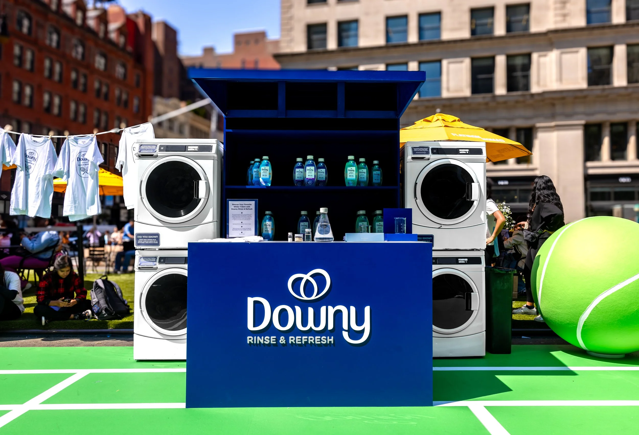 The high-profile activation for Downy x US Open was held at the iconic Flatiron Plaza in New York City. This pop-up was designed to captivate audiences with a unique, immersive experience that blended the energy of the US Open with Downy’s brand essence.